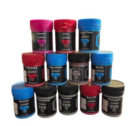 | Flavor | Banana Soft Float, Duiwelsdrek Soft Float, Vampire Soft floats, Rooi GP Soft Floats, Honeydew Soft Floats, Perdeby Soft Floats, Plain White Soft Floats, Gatvol Soft Floats, Banlic Soft Floats, Sweets Soft Floats, Vicks Soft Floats, Crazy Pine Soft Floats, Has been Soft Floats, Stutts Soft Floats, Gumtree Soft Floats, Pampoenpitte S/Floats, White Bloekom S/Floats, Aniseed S/Floats, Spearmint S/Floats, Lipstick S/Floats, Red Flag, Musk S/Floats, Roquefort, Kaas s/float, Onion S/Float, DV Fruit S/Float, Devils Fork S/Float, Wit Perdeby S/Float  |